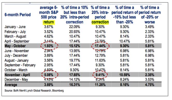 Entre octubre y mayo el S&P500 tiende a ofrecer un retorno del