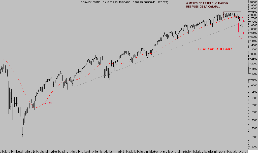 Las Bolsas han pasado de la tranquilidad y calma experimentada durante el estrecho rango lateral febrero-agosto, cuando era extraño asistir a cierres diarios superiores al punto porcentual, a los bruscos giros intradiarios de las últimas semanas y movimientos superiores al punto porcentual. Después de 80 meses de tipos cero, asistidos con reflación programada y apuntalamiento masivo de las cotizaciones, 6 años en los que el mercado -medido a través del S&P500- ha crecido 7 veces más que el PIB americano, los mercados están desarrollando la necesaria corrección que está removiendo los cimientos de las estructuras técnicas alcistas fabricadas por las autoridades en distintas clases de activos durante los últimos seis años ¿Han tomado conciencia los inversores de la situación?.